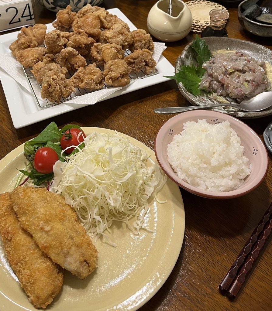 朝、義兄さんが新潟県で釣ったアジを使ったアジフライやナメロウ(+唐揚げ)をいただきました🎣✨